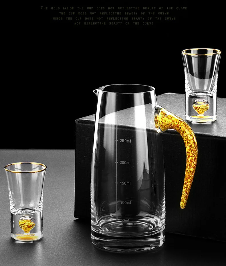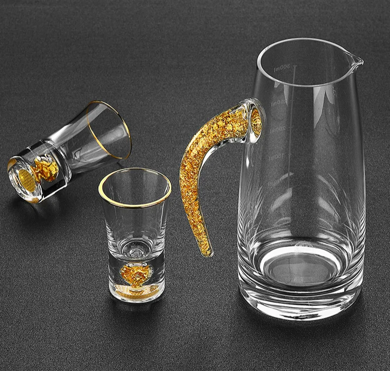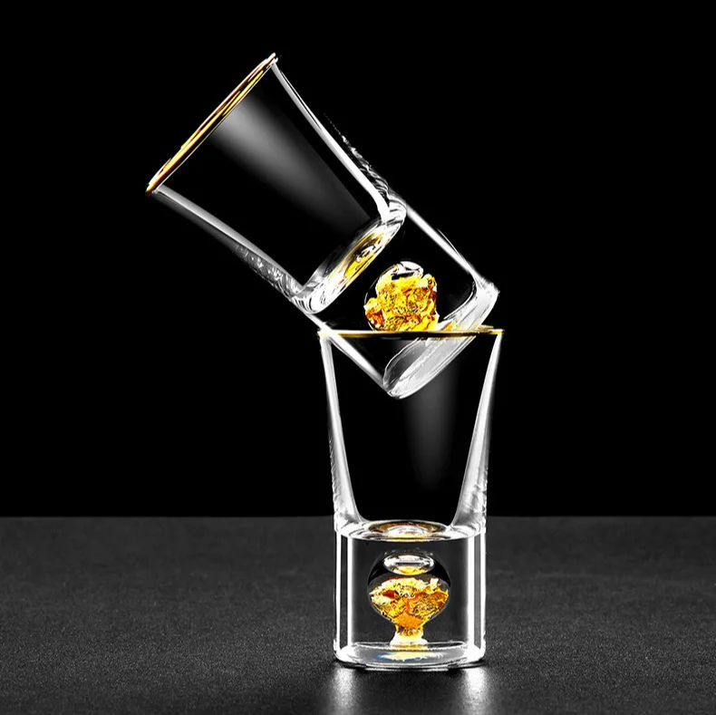 24K Gold Foil Crystal Liquor Spirits Shot Glass Bar High Grade Golden Sake Vodka Small Shots Wine Glasses Cup Vasos De Cristal