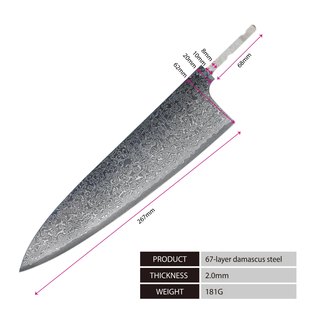 DMS-270 8 inches Forged Kiritsuke Damascus Steel Blade
