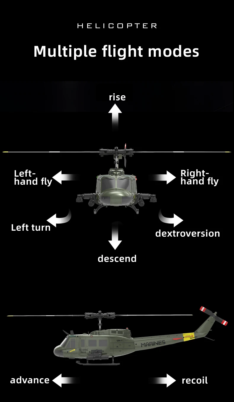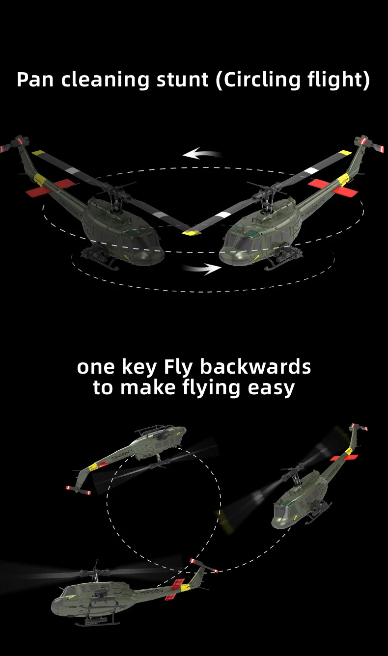 Product Description: UH-1 Six channel aileron free true version stunt helicopter (intelligent positioning version)