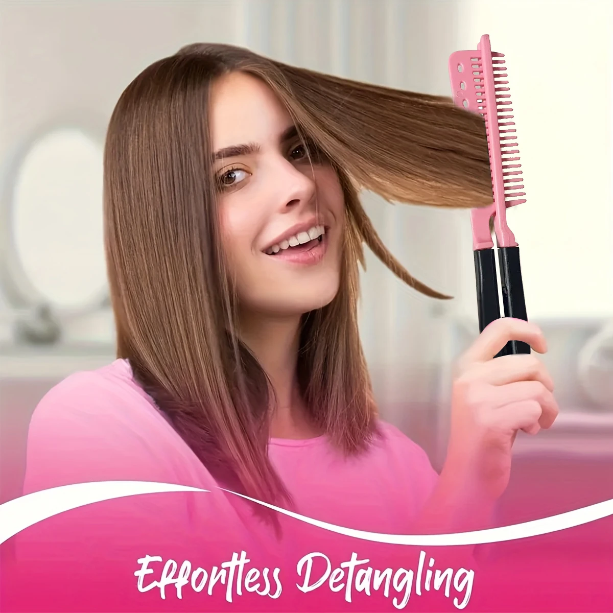 Size: 25*3.7cm(9.84*1.46in)Package Include: 1Pcs Hair Straightener Comb