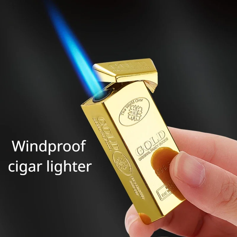 Gold Bar Gas Inflatable Lighter Cigarette Accessories Butane Lighters Metal Windproof Lighter Men's Luxury Lighter Gift Gadgets