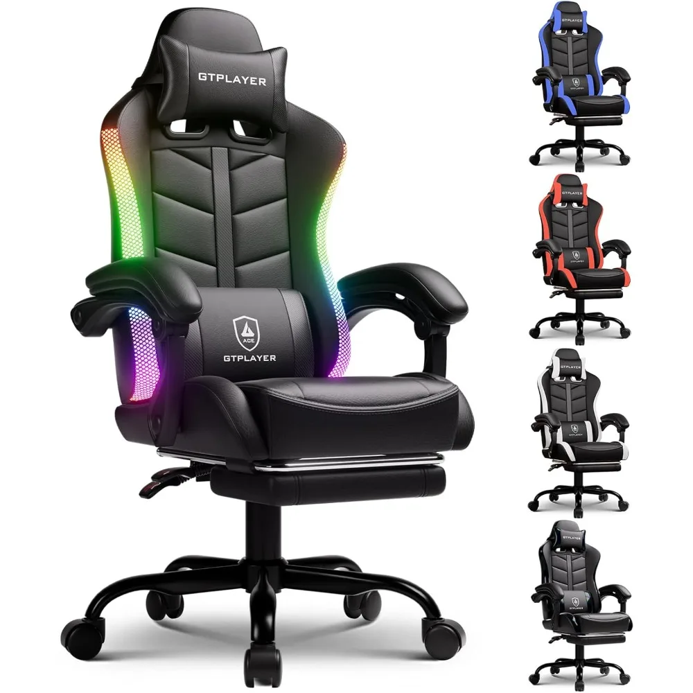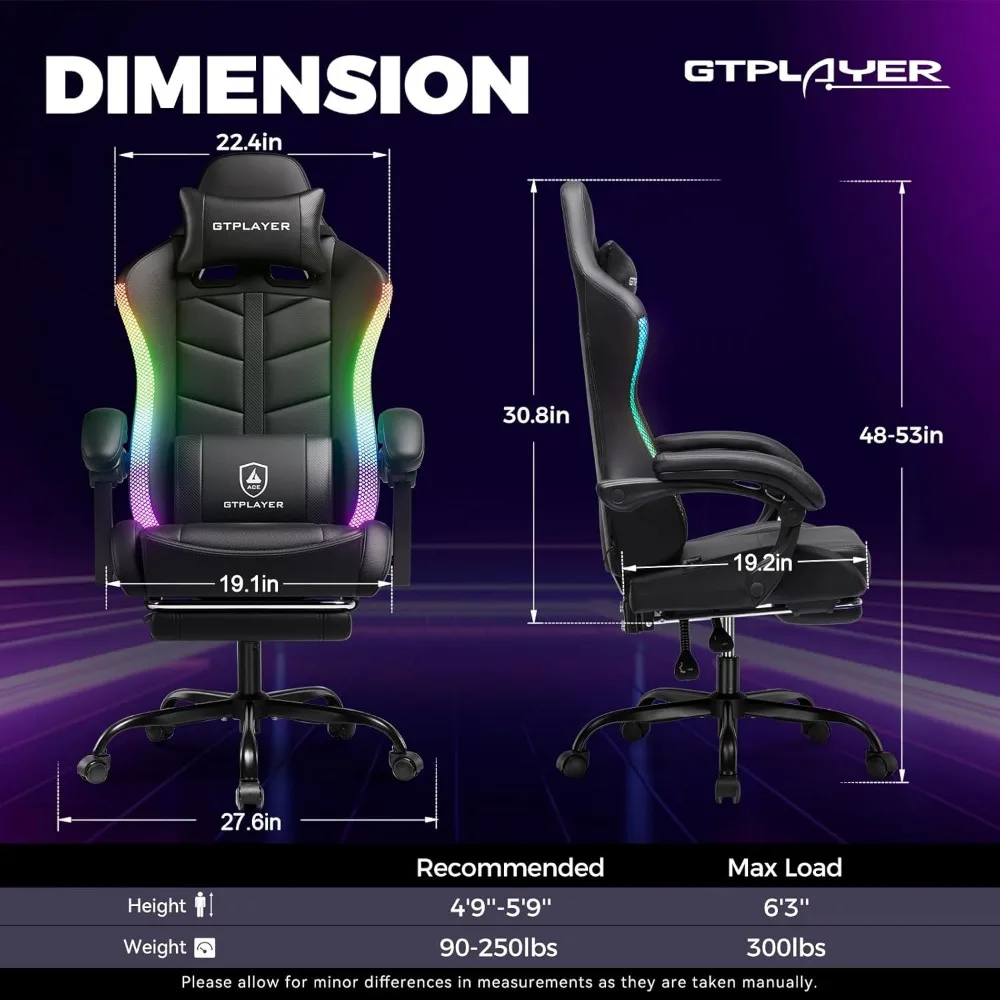 gtplayer rgb gaming chair with footrest, computer gaming chair with led lights for adults, height adjustable pc gamer chair with