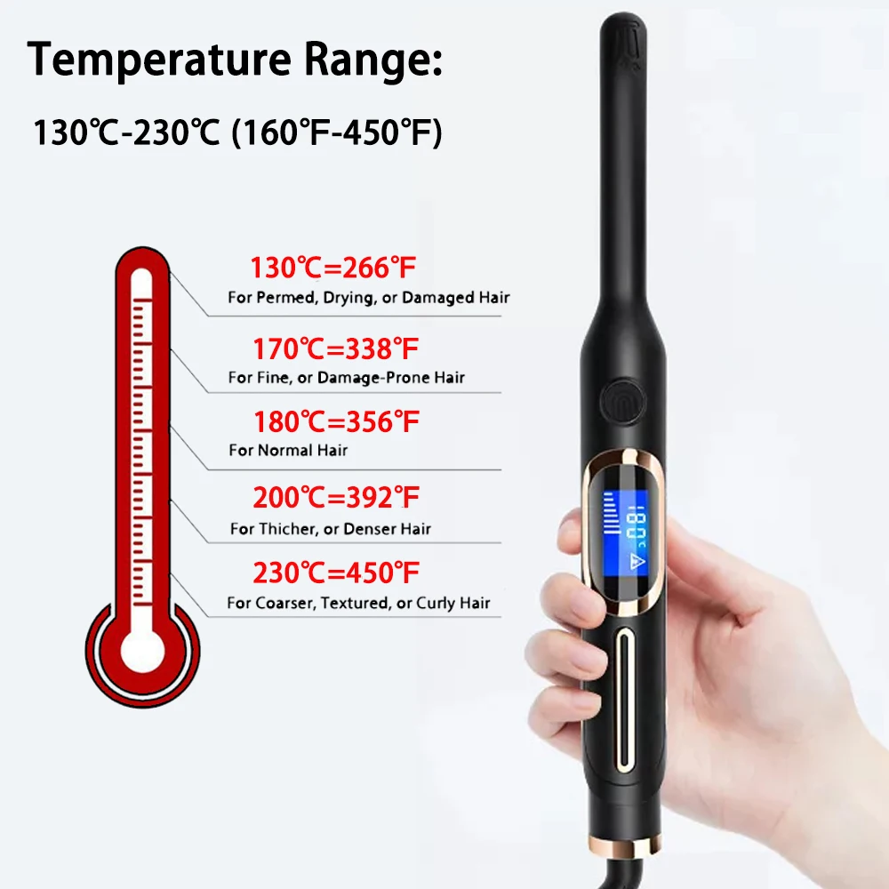 3. Use (+) or (-) button to adjust temperature. This styler will be ready to use when the LED light stops flashing.