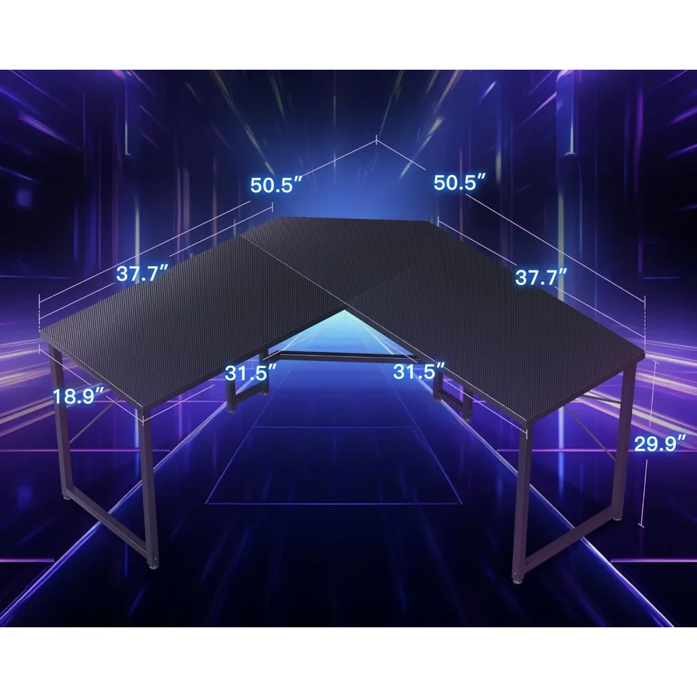 - 【L Desk, Gaming Desk】The L Shaped Gaming Desk is a dedicated gaming hub tailored to meet the needs of both casual and hardcore gamers. Its L-shaped design maximizes space efficiency, fitting snugly into any corner of your room, while offering a large operating surface ideal for immersive gaming experiences.