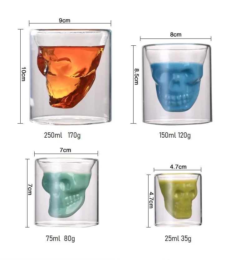 Skull Glass Cups 25/75/150/250ml Crystal Clear Creative Designer Party Bar Vodka Beer Drinking Glasses Unique Novelty Gift