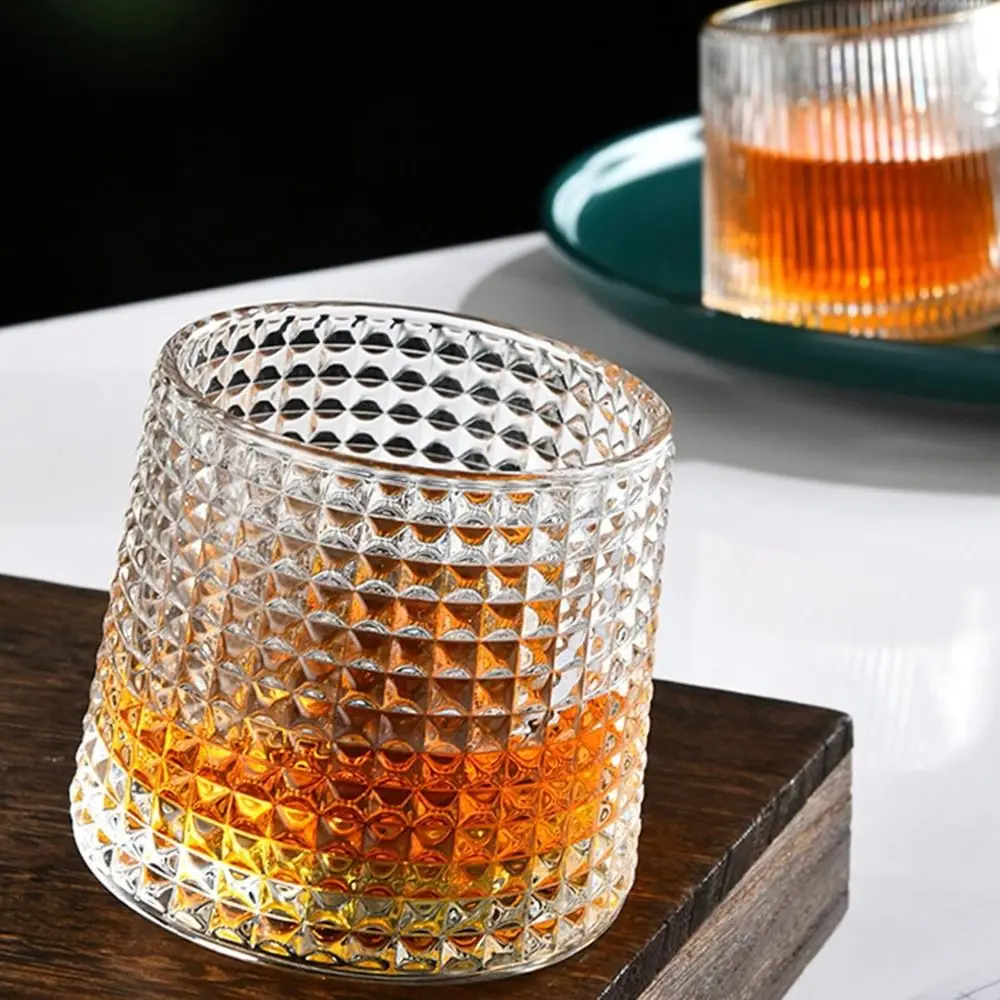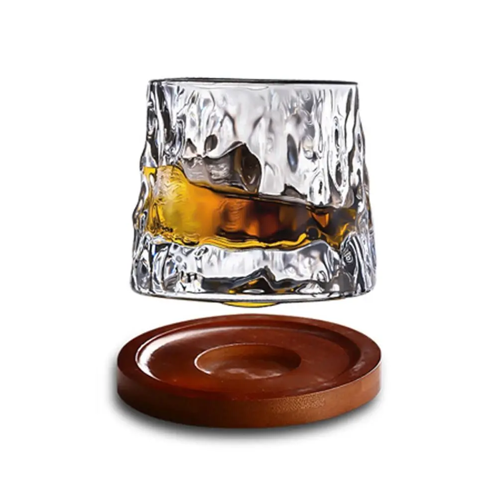 Whiskey Glasses Rotating Whisky Glass with Base 360 Rotate Degrees Crystal Rum Glass for Cocktail Party Drinking Glass
