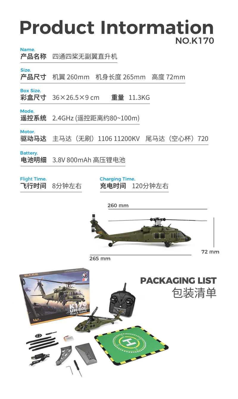 Model Number: WLtoys K170 UH-60L Rc Helicopter