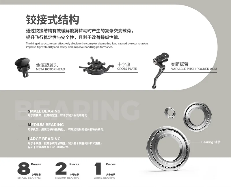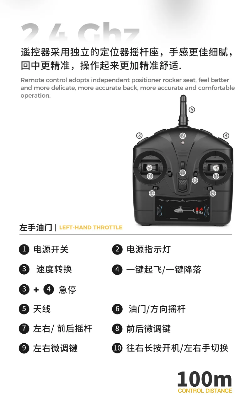 ● 4-channel remote control Free switch between left and right hands, with functions such as airplane and remote low voltage prompts.
